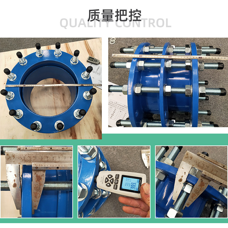 可拆卸雙法蘭傳力接頭:安裝在管道上后,根據所需的伸縮距離進行定位,擰緊螺母。在螺母壓蓋的作用下,彈性密封圈依靠相互坡度在管道外側起到密封和連接的作用。主要與管道閘閥連接,不僅起到補償管道的作用,而且更方便閥門的維護和更換。
