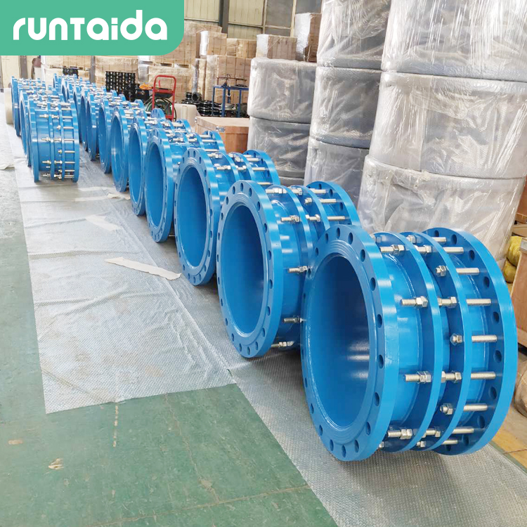 雙法蘭限位伸縮接頭在安裝前,應檢查雙法蘭限位伸縮接頭的零件等是情否況齊全。是否有損壞或變形;將底蓋安裝在管道的一端,確保底蓋與管道安裝表面接頭平整體,將無縫隙接頭。體安裝在管道上,確保接頭體與管道軸線垂直。在接頭體和底蓋之間安裝密封圈,確保密封圈安裝平整,無扭曲或損壞。將螺栓緊固,確保接頭體和底蓋之間的連接緊密。